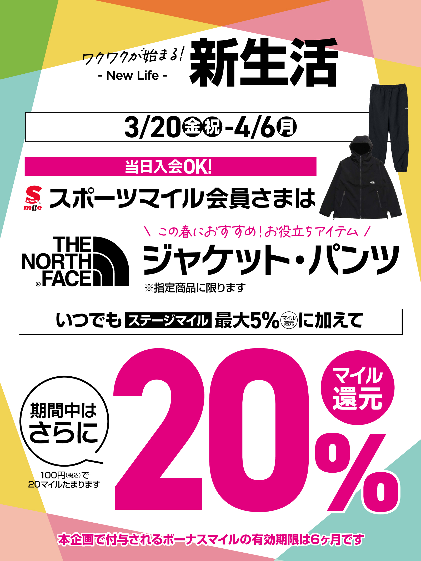 【スポーツマイル会員さま限定】THE NORTH FACE 指定のジャケット・パンツご購入で+20%マイル還元!