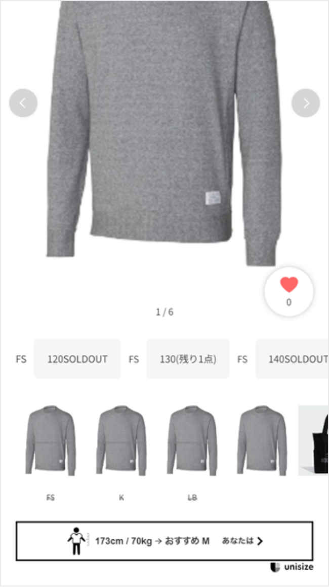 ※unisizeバナーが表示されないアイテムは
