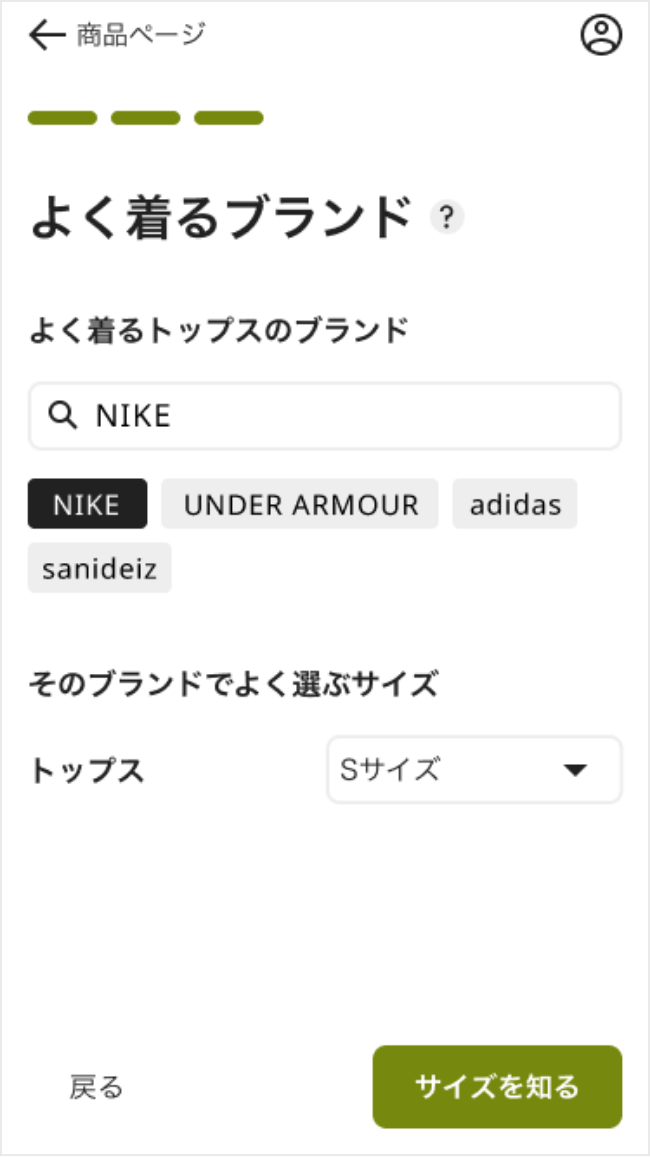 選んだ洋服のオススメのサイズや、