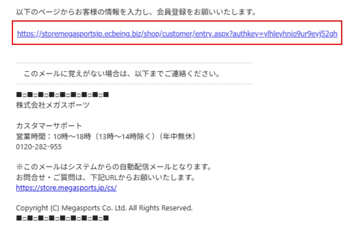 ※メールアドレスが誤って入力していた場合、【megasports.jp】 からのドメイン指定受信が出来ていない場合、メールが届かない可能性がございます。 お買い物の際にも必要となりますので、お忘れにならぬよう、また他人に知られないよう、大切に保管してください。