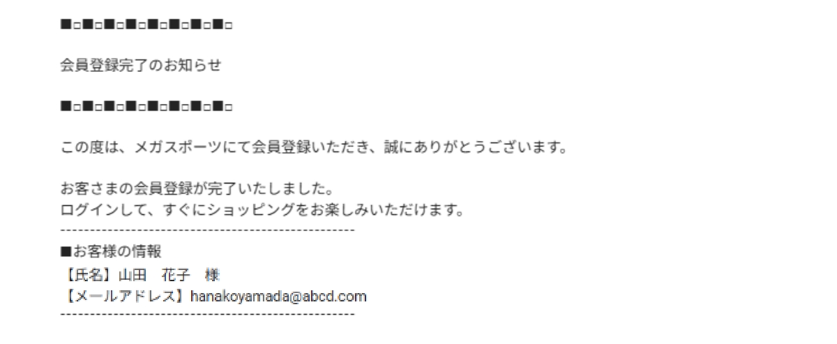 - 【会員登録完了のお知らせ】メールが届けば正常に登録が完了です。