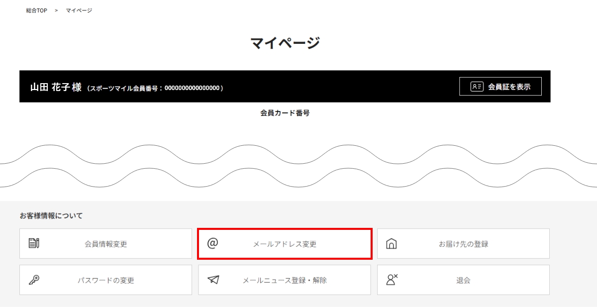 - ログイン後、「マイページ」にある【メールアドレス変更】をクリックしてください。