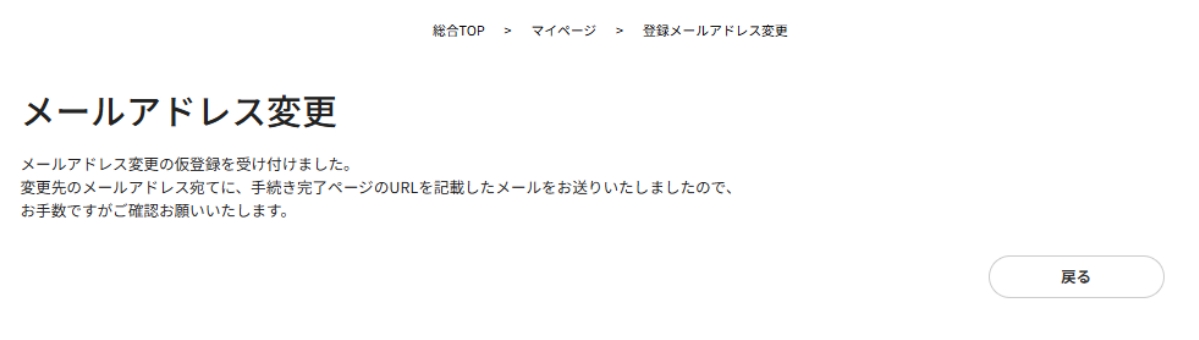 - 変更先のメールアドレス宛てに、手続き完了ページのURLを記載したメールを送信します。