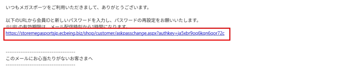 - 【パスワード再設定方法のお知らせ】メールが届きますので、記載URLをクリックしてください。