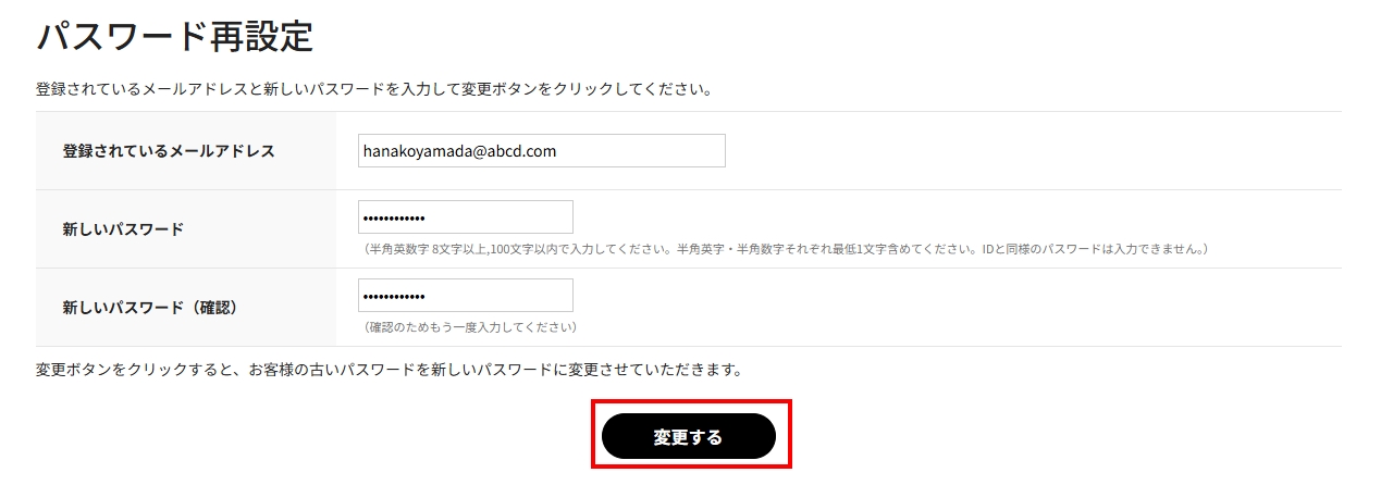 - 新しいパスワードを入力し【変更する】をクリックするとパスワードの変更が完了します。