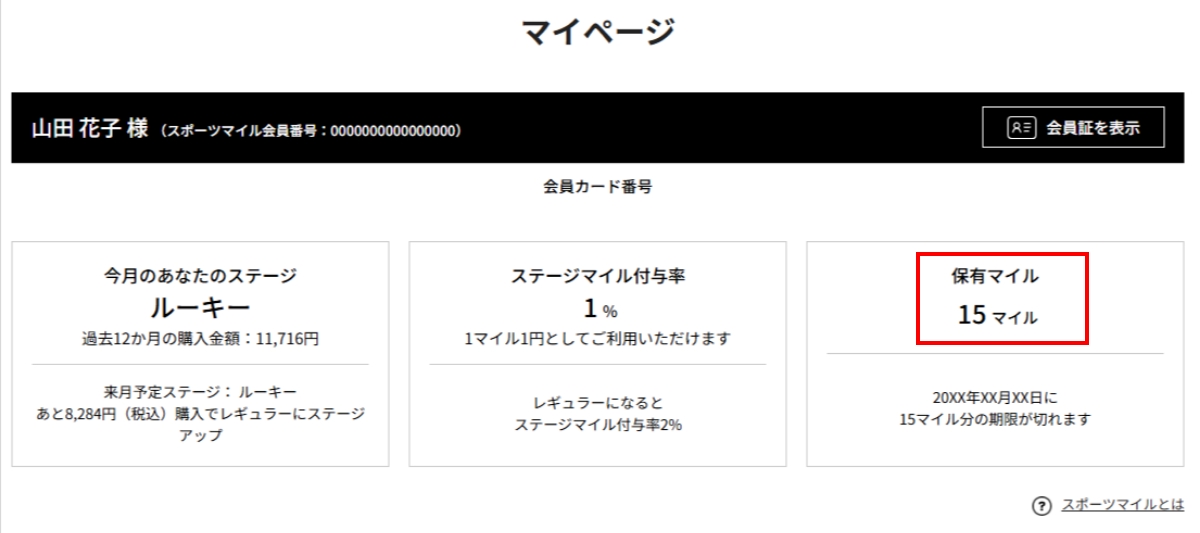 - ログイン後のマイページ内に保有マイルを記載しております。