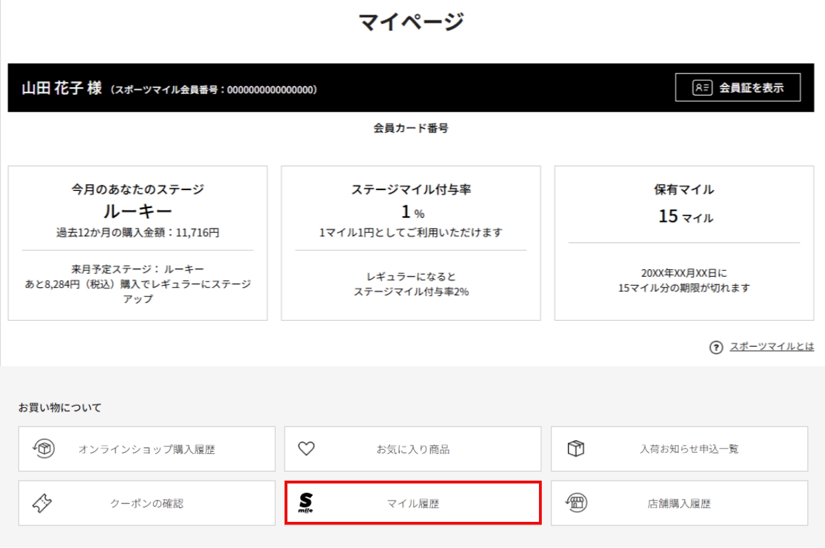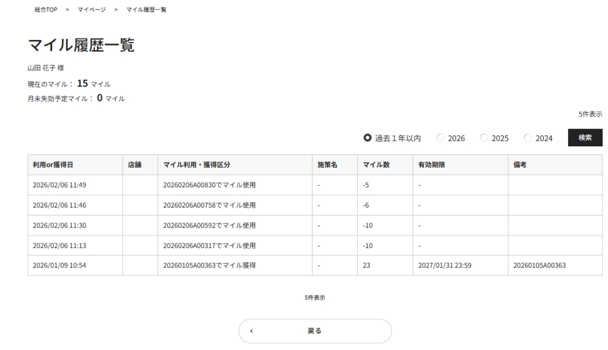 - 【マイル履歴一覧】がご確認いただけます。