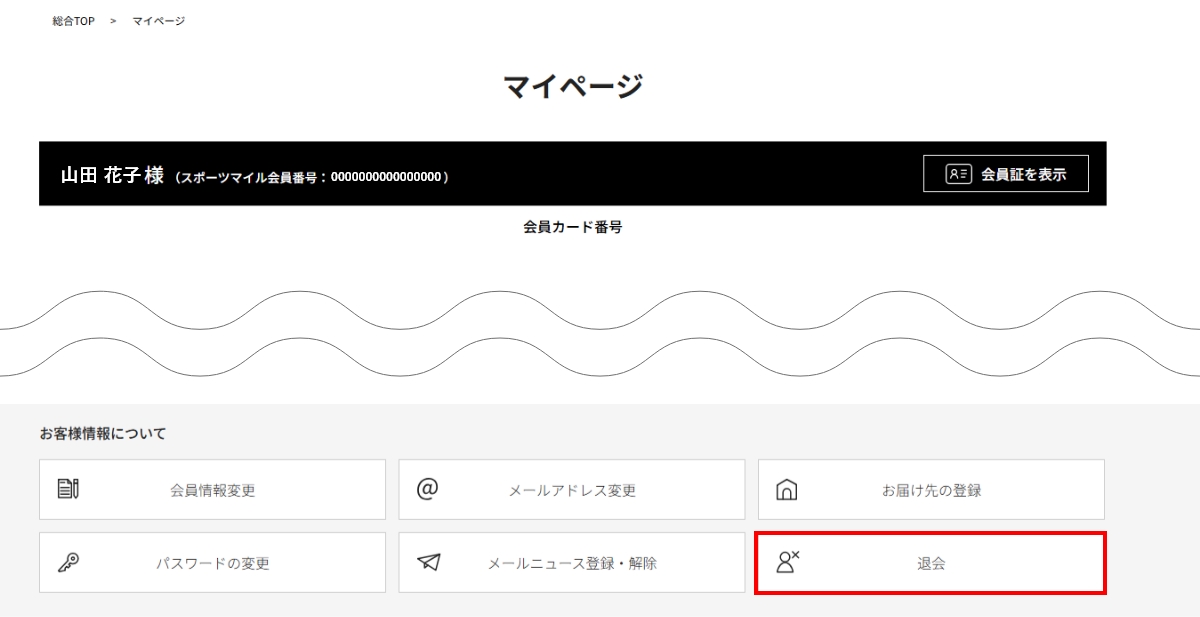 - ログイン後、マイページ内にある【退会】をクリックしてください。