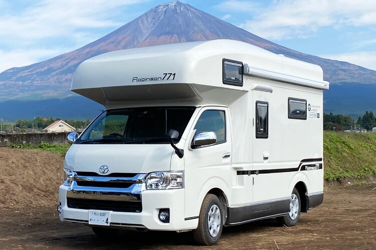 Japan C.R.C.オリジナル車両『ロビンソン 771(Robinson771)』は、TOYOTA ハイエース ロングワゴンボディがベースのキャンピングカーです。ロングワゴンボディを使用しているので、普通免許で運転が可能ながら大人数にも適した車両です。
